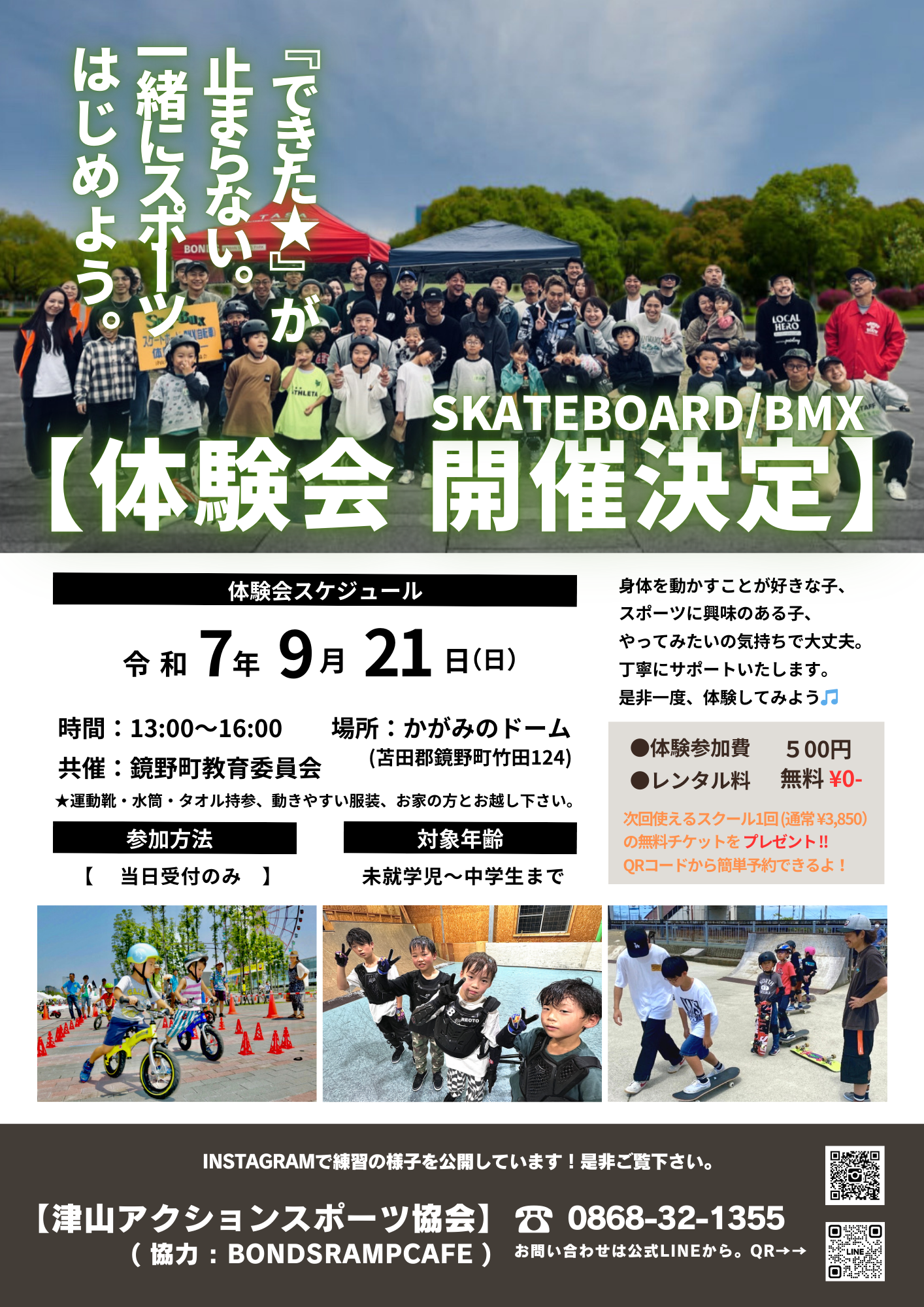 🛹BMXとスケートボードで、自分だけの“かっこよさ”を育てよう。 BONDS SCHOOLは、BMXとスケートボードという自由でスタイリッシュなスポーツを通して、子どもたちの「挑戦する力」「自分を表現する力」「考えて動く力」を育てるアクションスポーツスクールです。 このスポーツには、正解も上下関係もありません。あるのは“自分らしくいること”と、“楽しく続けること”。 🚀スポーツの新しいカタチを体感しよう。 スケートボードもBMXも、かつては「遊び」や「ストリート」の文化でした。でも今は、世界中で注目されるプロスポーツとして進化し、オリンピック競技にもなりました。 BONDS SCHOOLでは、そんな進化するスポーツの世界に、子どもたちが気軽に触れられるような環境と、楽しく安全に取り組めるレッスンを提供しています。 🌈誰にでも“できた!”が生まれる場所。 はじめは怖かった技ができるようになった時の、笑顔。自分で選んで、自分で決めて、自分のやり方で乗るからこそ、そこには一人ひとり違った成長の形があります。 運動が得意じゃなくても、ルールに縛られずに挑戦できる。それが、BMXやスケートボードの大きな魅力です。 🤝BONDS SCHOOLが大切にしていること 安全第一+楽しさ重視のレッスン設計 初心者でも安心のレンタル&プロ講師サポート 成長を可視化できるステップアップ制度 仲間と応援し合えるコミュニティの存在 一人ひとりが主役になれる環境づくり ✨スポーツの枠を超えた「自己表現」のステージへ。 BONDS SCHOOLは、単なる技術指導の場ではありません。ここは、子どもたちが“自分らしさ”に出会える場所。 BMXやスケートボードを通して、夢中になる体験と、誰かと比べない「自分の成長」を、一緒に育てていきましょう。