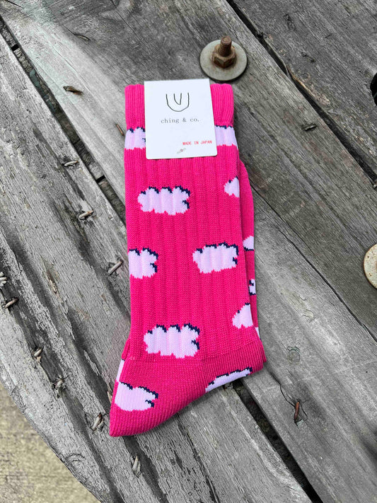★送料無料 BMX SKATEBOARD ソックス ching&co. "ひつじ雲 -pink-" Socks ピンク スケートボード オシャレ ■■