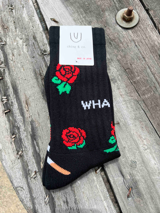 送料無料 BMX SKATEBOARD ソックス ching&co. "ROSE -black-" Socks 黒 チンアンドコー スケートボード ■■