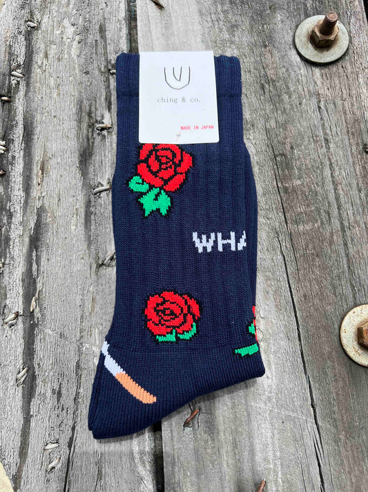 送料無料 BMX SKATEBOARD ソックス ching&co. "ROSE -navy-" Socks ネイビー チンアンドコー スケートボード ■■