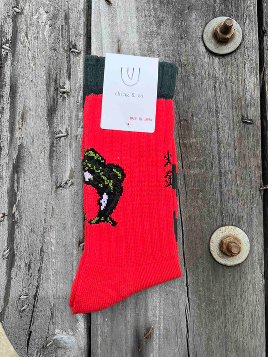 送料無料 BMX SKATEBOARD ソックス ching&co. "爆釣 -black bass- " Socks レッド チンアンドコー スケートボード ■■
