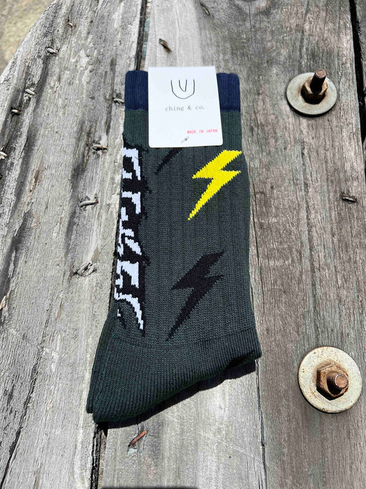 送料無料 BMX SKATEBOARD ソックス ching&co. "カミナリ -green-" Socks グリーン チンアンドコー スケートボード ■■