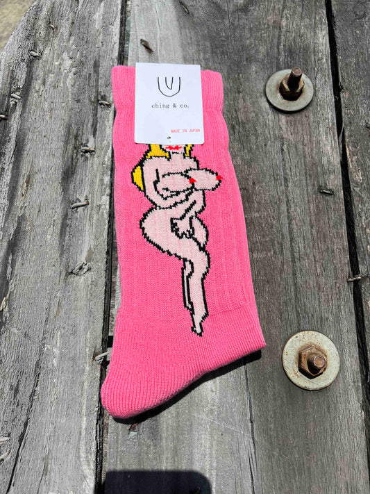 送料無料 BMX SKATEBOARD ソックス ching&co. "裸婦&TOUGH -pink-" Socks ピンク チンアンドコー スケートボード ■■